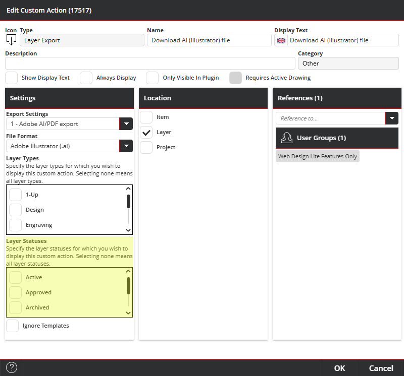 We’ve introduced a new Custom Action setting that allows configured layer statuses to control when a custom action is displayed. This builds on the existing settings used to show or hide custom actions based on Layer Types. Together, these options allow more precise control over which actions are available in each scenario, saving users the guesswork and helping to avoid mistakes.