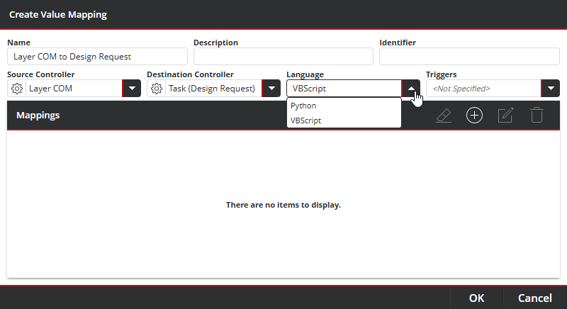 Initially, Python scripts can be added to COM-based Value Mappings by choosing from a new Language selection during Value Mapping creation. Future releases will continue to extend this approach to other areas currently using VBScript, such as script-based Workflow Activities.